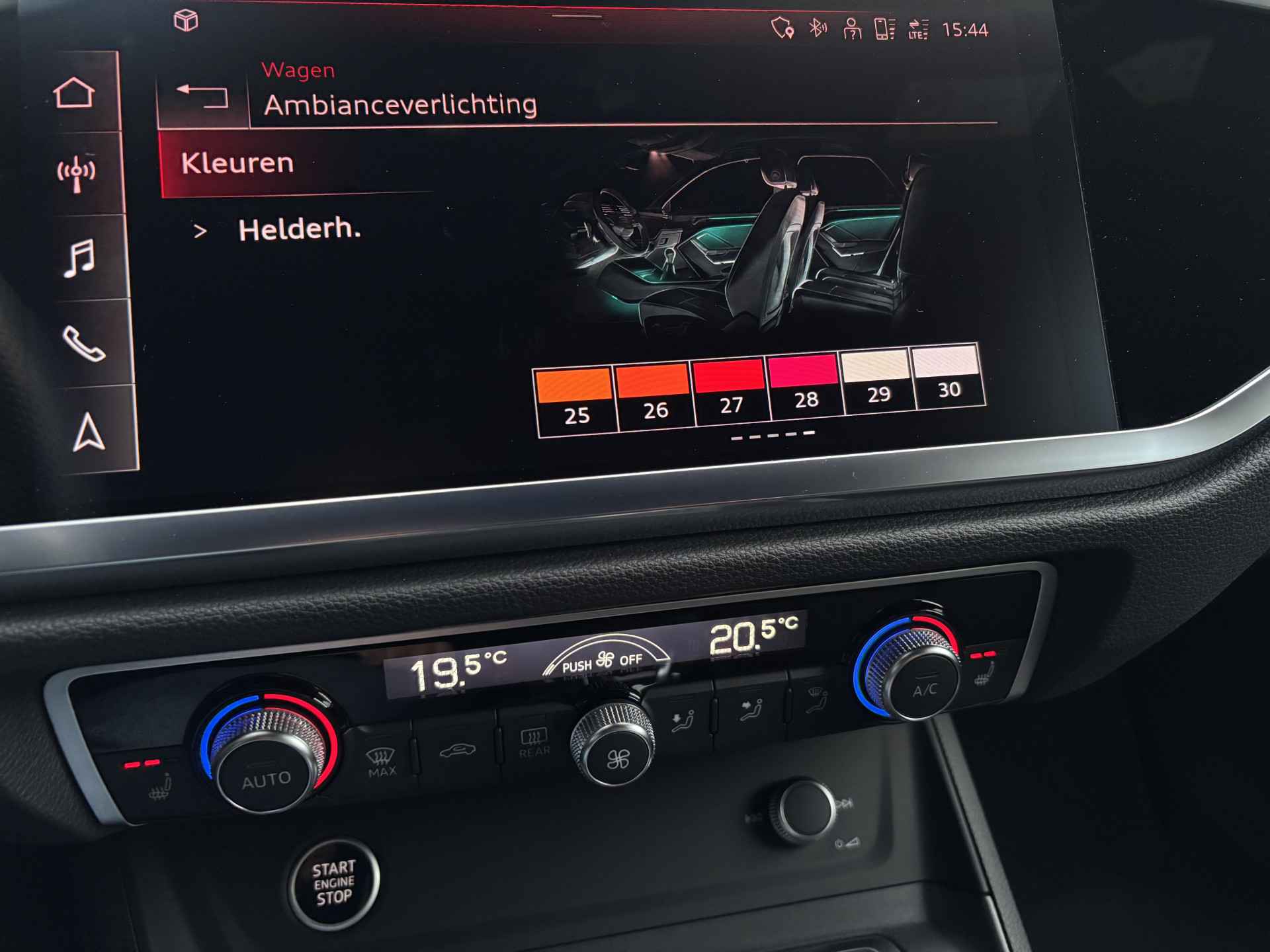 Daytona grijs metallic met optiekpakket zwart Audi Exclusive, S-line sportstoelen met half leer en stoelverwarming, S-line sportstuur, MMI Navigatie Plus, Audi Virtual Cockpit Plus, Keyless Go, Elektrisch bedienbare achterklep, elektrisch zwenkbare Audi trekhaak, elektrisch inklapbare buitenspiegels, Audi Sound Systeem, parkeersensoren voor en achter met camera, Audi Connect, Audi Smartphone interface, Apple Car Play, Android Auto, Adaptive Cruise Control, Audi Lane Assist, Audi Side Assist, Ambiente lichtpakket plus (instelbaar in verschillende kleuren), verkeersborden herkenning etc. etc.